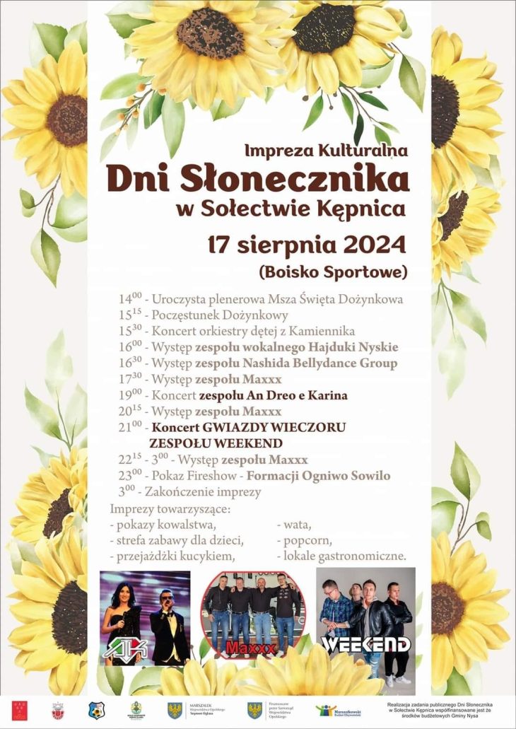 W Kępnicy zjawią się prawdziwe gwiazdy! Na scenie zobaczymy zespoły An Dreo e Karina oraz Weekend. To i wiele więcej atrakcji przygotowano w ramach Dni Słonecznika.