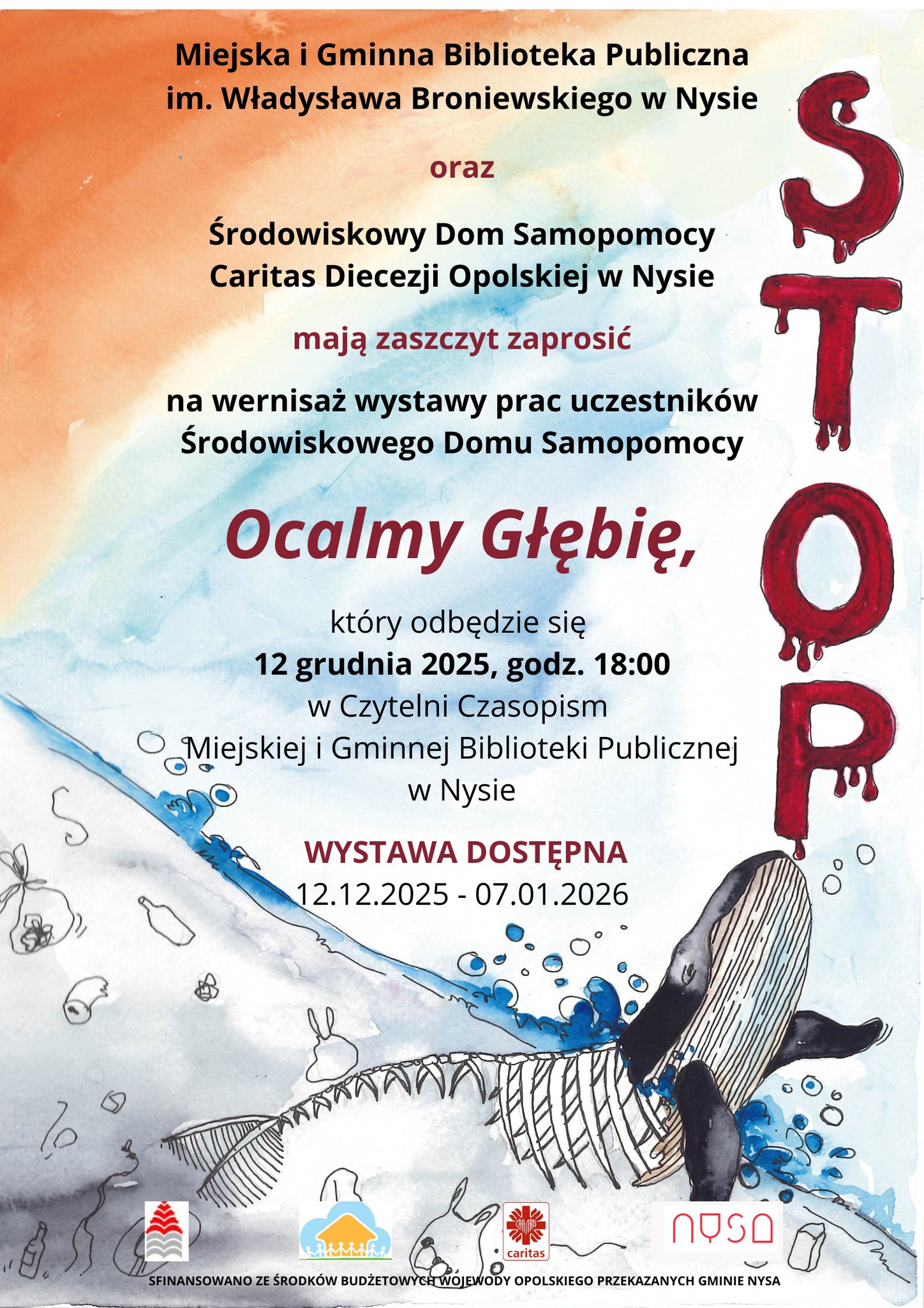 12 grudnia 2025 roku o godz. 18.00 – wernisaż wystawy prac uczestników Środowiskowego Domu Samopomocy pt. ,,Ocalmy głębię”