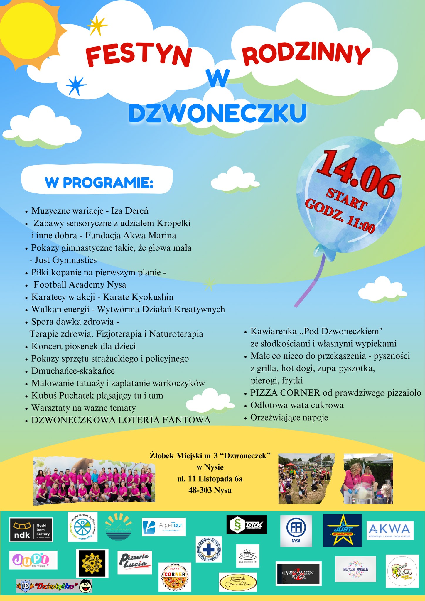 Ponadto Żłobek Miejski nr 3 “Dzwoneczek” w Nysie oraz Przedszkole nr 12 w Nysie zapraszają na swoje festyny.