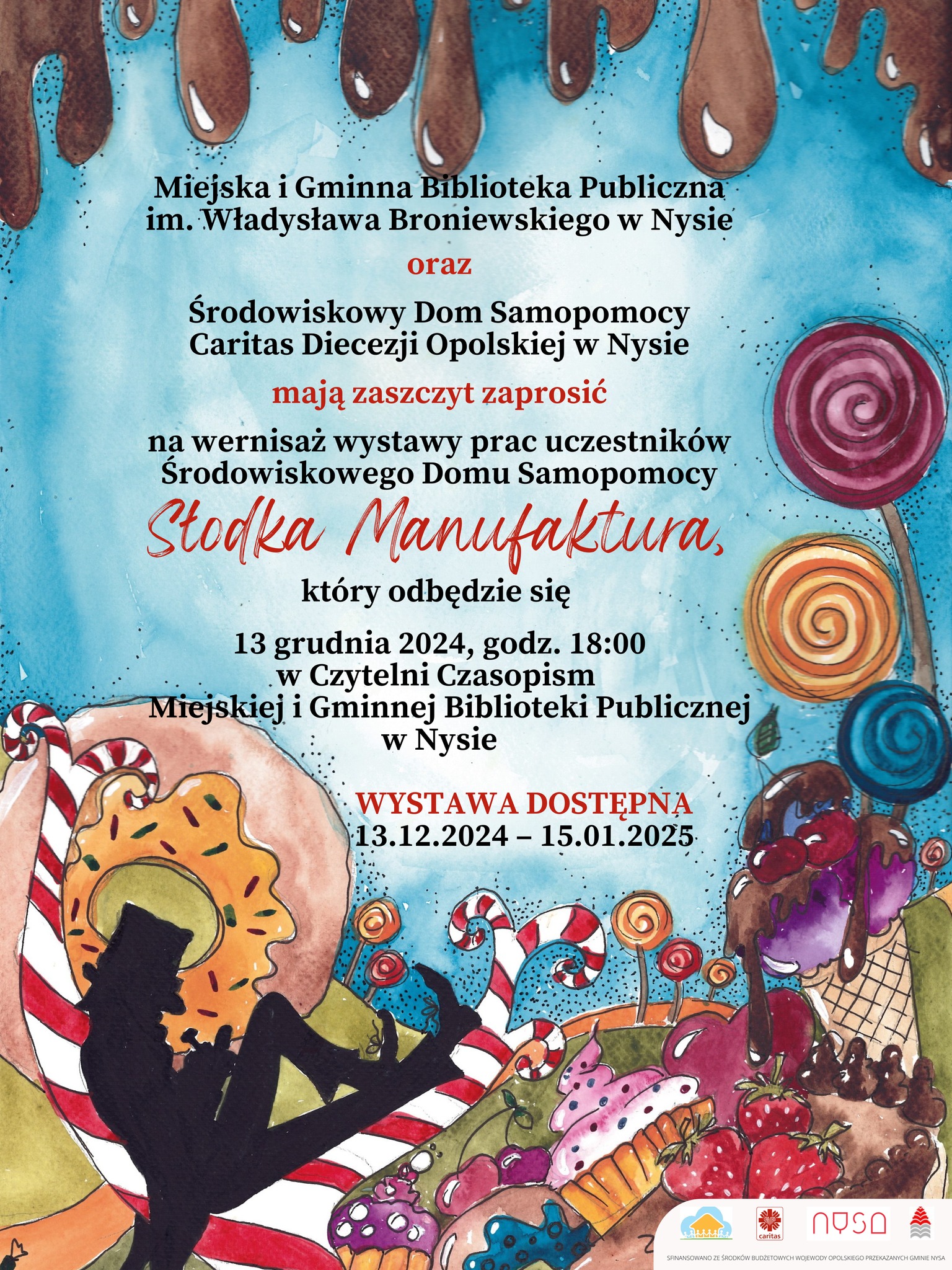 13 grudnia godz. 18:00 – wernisaż wystawy prac uczestników Środowiskowego Domu Samopomocy “Caritas” Słodka Manufaktura