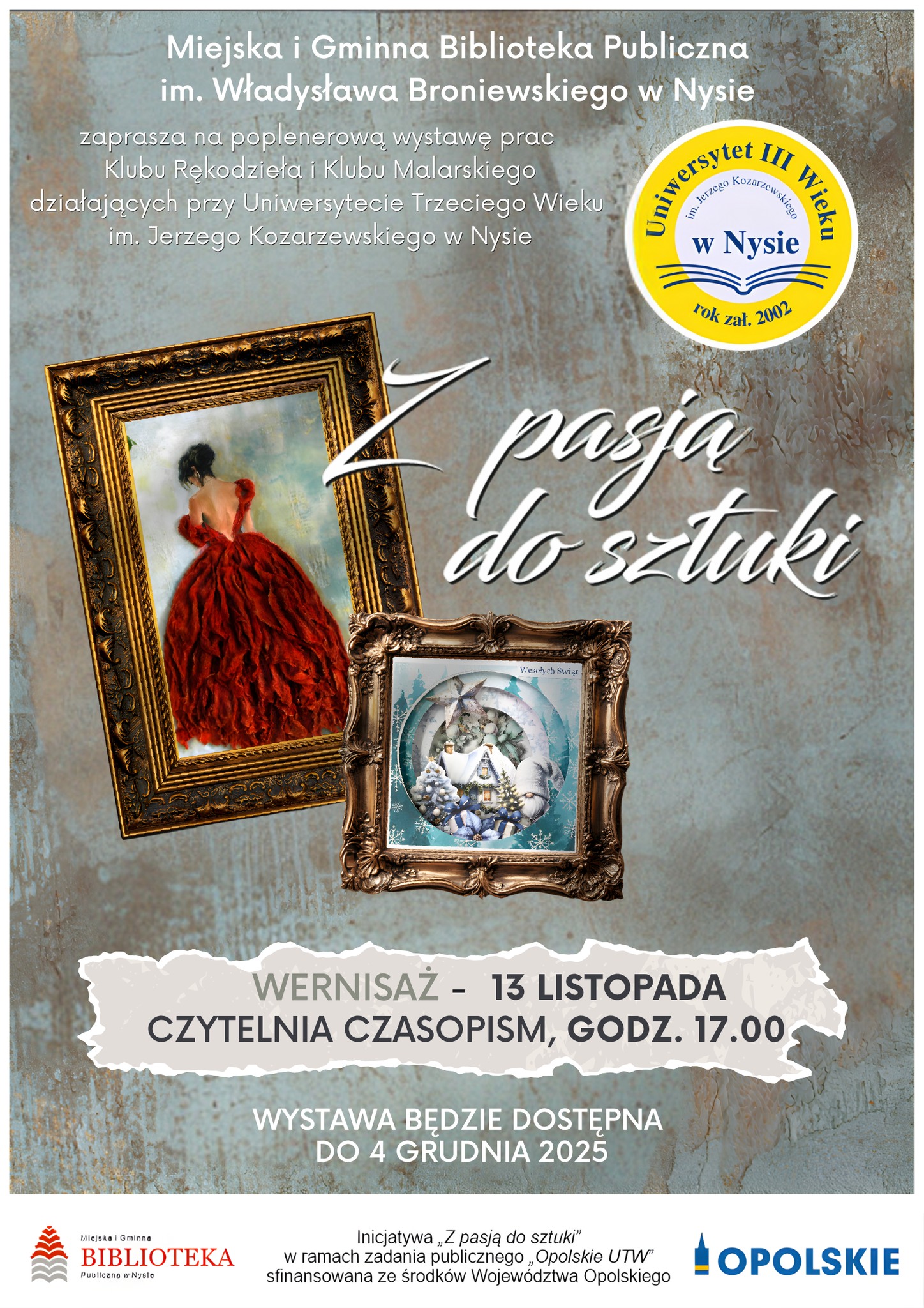 Wystawa „Z pasją do sztuki” Klubu Rękodzieła i Klubu Malarskiego działających przy Uniwersytecie Trzeciego Wieku im. Jerzego Kozarzewskiego w Nysie