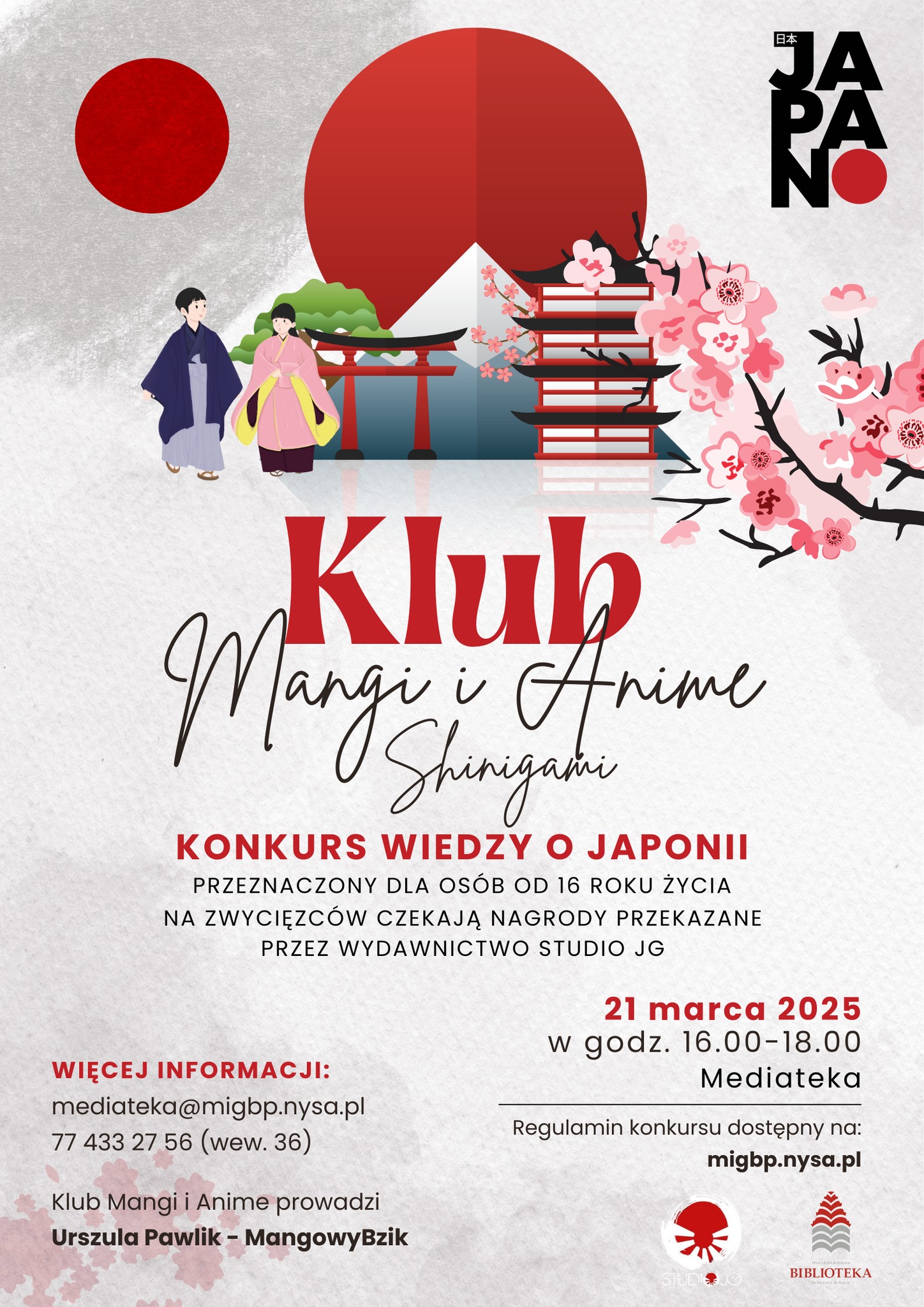 21 marca godz. 16:00 – spotkanie Klubu Mangi i Anime – konkurs wiedzy o Japonii