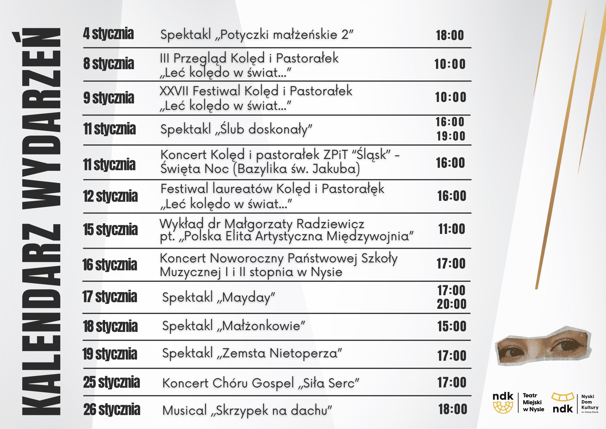 Punkt Informacji Turystycznej w Nysie przygotował zestawienie wydarzeń w Nysie na weekend 3-6 stycznia 2025 r.