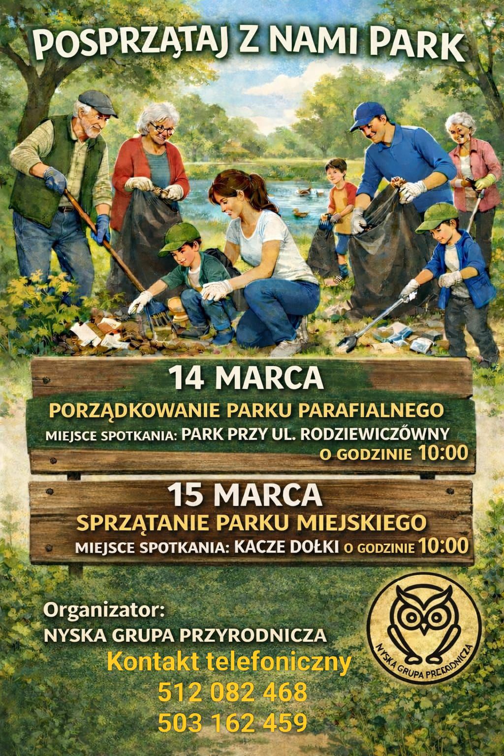 Jak informują organizatorzy -14 marca sobota od godziny 10 sprzątamy Park Parafialny przy ul. Rodziewiczówny. 15 marca niedziela od godziny 10 sprzątamy Park Miejski w Nysie zbiórka przy Kaczych dołkach.