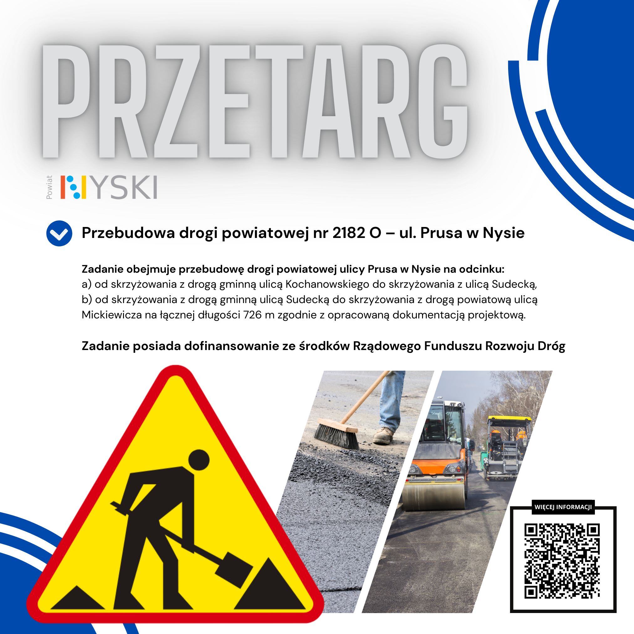 Ogłoszony przetarg na realizację zadania pn. “Przebudowa drogi powiatowej nr 2182 O – ul. Prusa w Nysie”