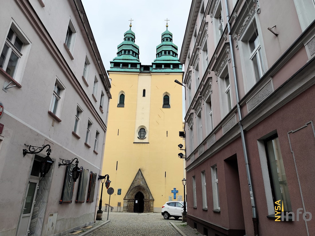 Historia kościoła sięga oczywiście czasów średniowiecza, kiedy to lokowano miasto. Obecnie te gotyckie elementy są niemal w całości zatarte przez późniejsze przebudowy oraz modernizacje. Dziś tak naprawdę korpus to już dzieło baroku, natomiast dwu wieżowa fasada pamięta jeszcze początki kościoła. A nas dziś najbardziej interesuje portal.