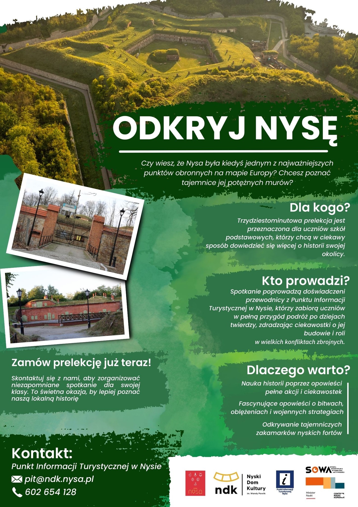 Razem z Punktem Informacji Turystycznej i Strefą SOWA proponujemy krótkie prelekcje dla uczniów ze szkół podstawowych w Gminie Nysa. Powódź uniemożliwiła nam przyjmowanie grup zainteresowanych nauką i historią w Bastionie, dlatego ruszamy w teren! Pracujemy też mocno nad usuwaniem skutków powodzi i przywróceniem działalności i mamy nadzieję, że spotkamy się tam ponownie i będzie jeszcze ciekawiej – informują organizatorzy.