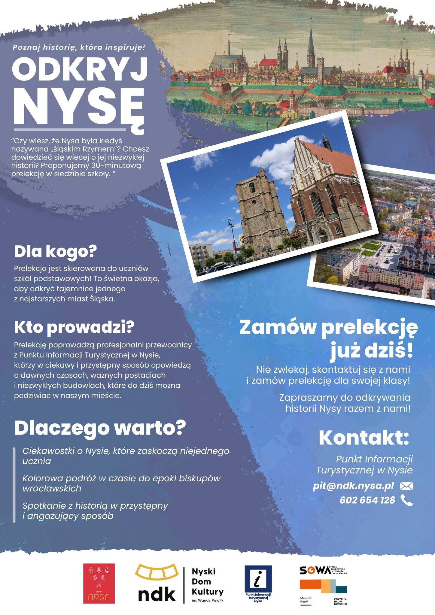 Zapraszamy do udziału w projekcie “Odkryj Nysę”! – informuje Nyski Dom Kultury. To będzie doskonała okazja, aby poznać zabytki i historię naszego miasta.