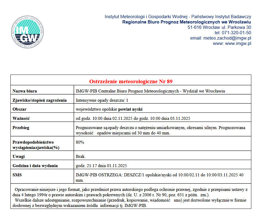 • Ostrzeżenie meteorologiczne nr 89