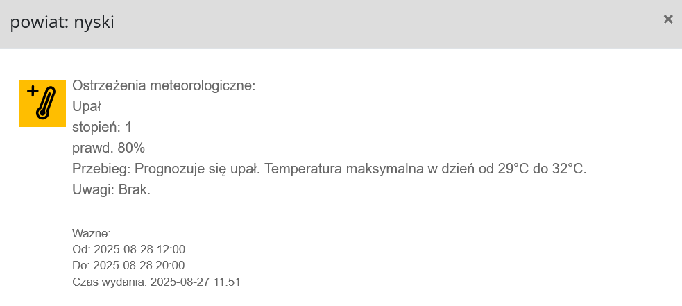 Ostrzeżenie pogodowe 27.08