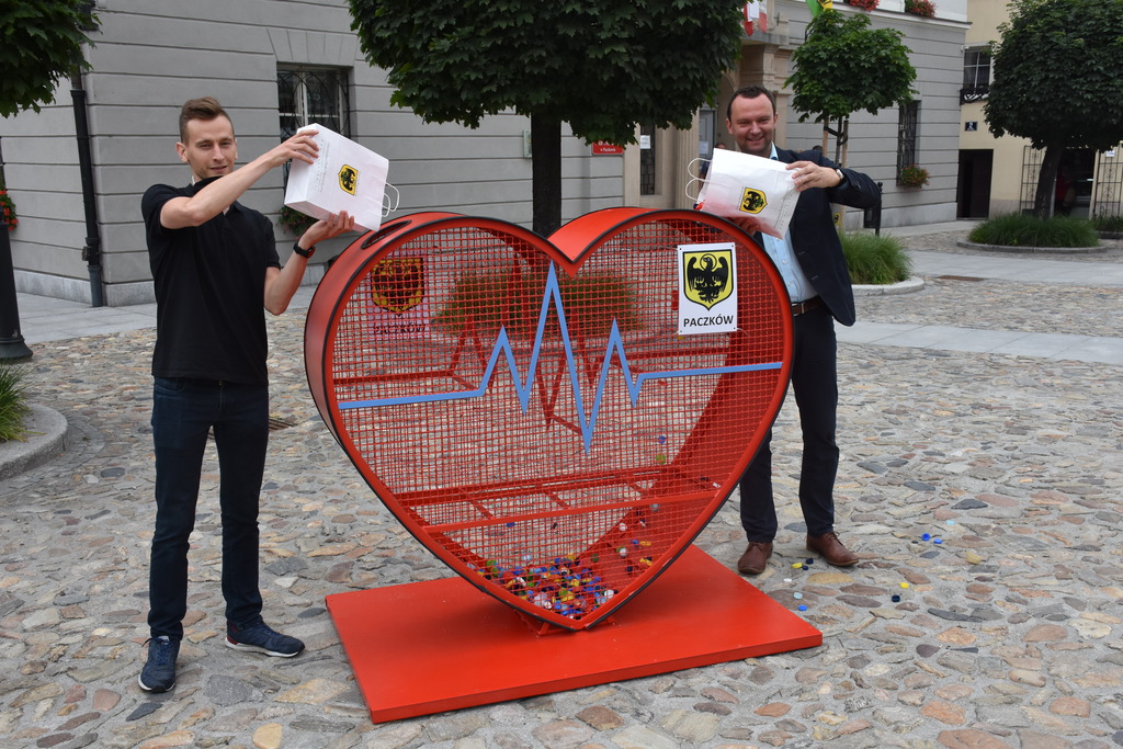 W ostatnim czasie takie serce trafiło także do Paczkowa. Metalowa konstrukcja – jakże charakterystyczna powstała dzięki wspólnej inicjatywie mieszkańców oraz Burmistrza Gminy Paczków Artura Rolki, którzy podejmując się tego zadania, włączyli się do akcji pomagania potrzebującym. Teraz mieszkańcy mają dodatkową motywację do segregacji nakrętek. Dochód z ich sprzedaży jest przeznaczany na pomoc potrzebującym w różnego rodzaju akcjach charytatywnych.