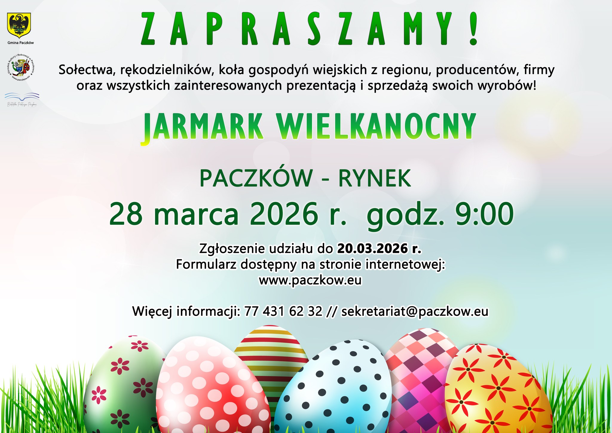 Formularz zgłoszeniowy oraz regulamin dostępne są na stronie: https://www.paczkow.eu/…/1057-jarmark-wielkanocny-21