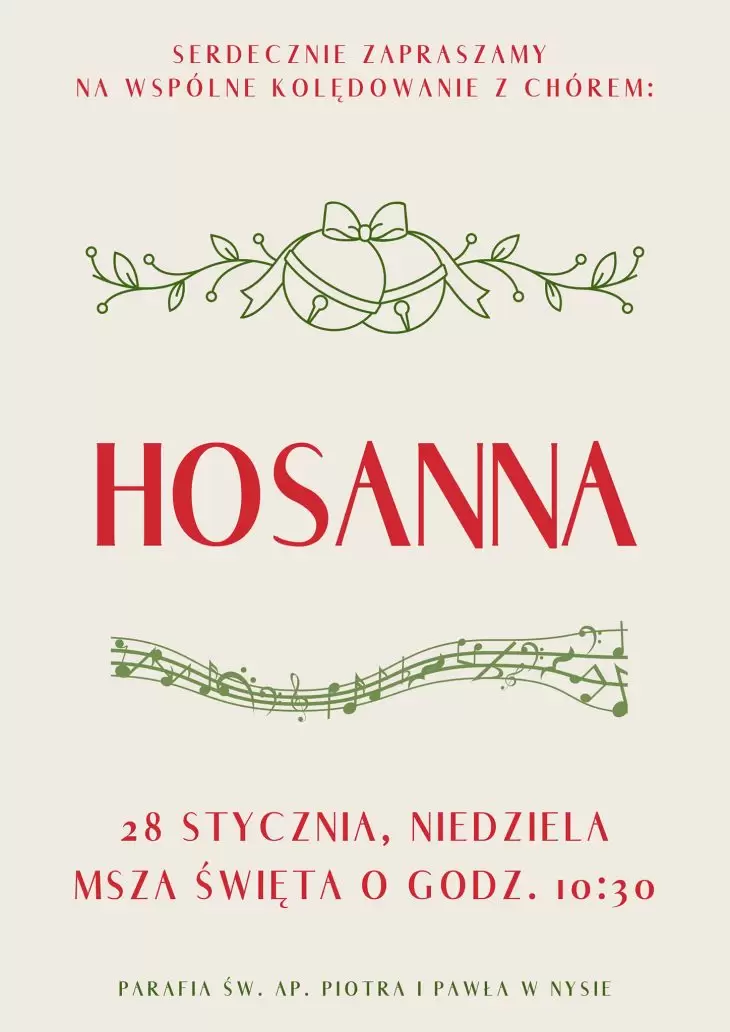 Kto ma jeszcze siły i chęci może wziąć udział we wspólnym kolędowaniu w kościele św. Piotra i Pawła w Nysie. Kolędowanie zaplanowano na 28 stycznia, a wydarzenie uświetni Chór Hosanna.