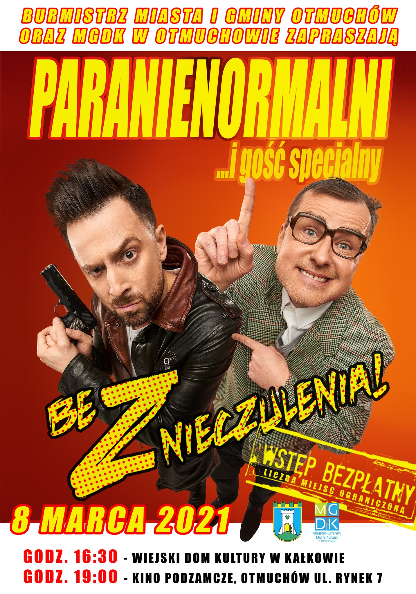 Burmistrz Miasta i Gminy Otmuchów oraz Miejsko-Gminny Dom Kultury w Otmuchowie zapraszają serdecznie na występ kabaretowy formacji “PARANIENOMALNI”, w programie “Bez znieczulenia”.