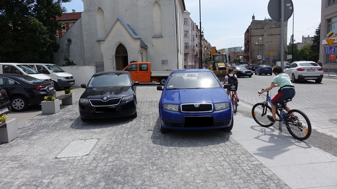 Prym w takim “parkowaniu” wiodą pracownicy pobliskiego banku, których zachowanie szybko podchwycili inni kierowcy. Dawniej na placu kwitł handel kwiatami oraz produktami rolnymi, dziś kwitnie parkowanie niezgodne z przepisami.
