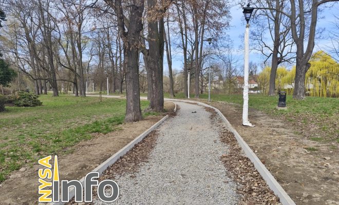 Dziś już możemy pospacerować częścią odnowionych alejek w Parku Miejskim w Nysie, jednak parkowy jaz czeka na remont.