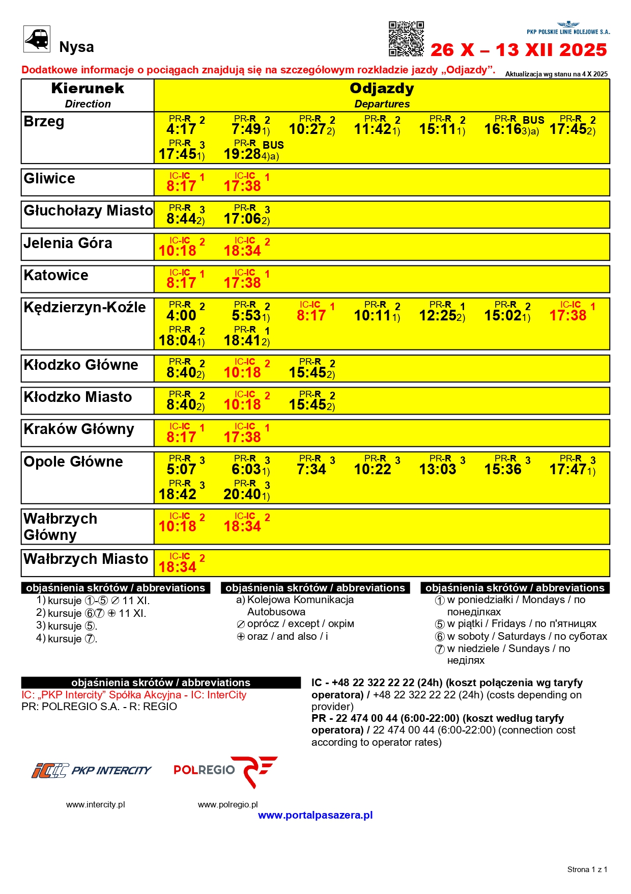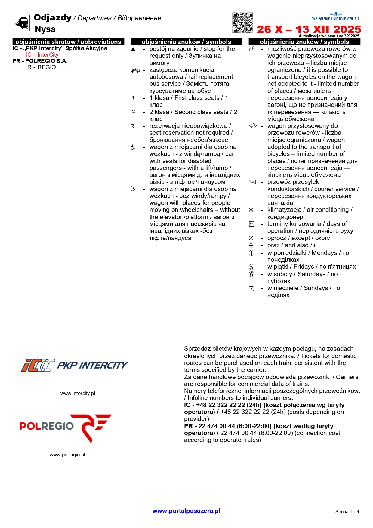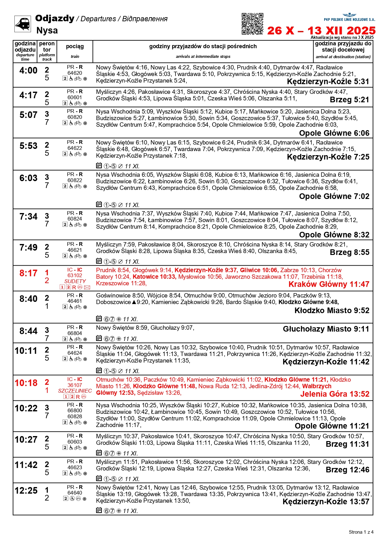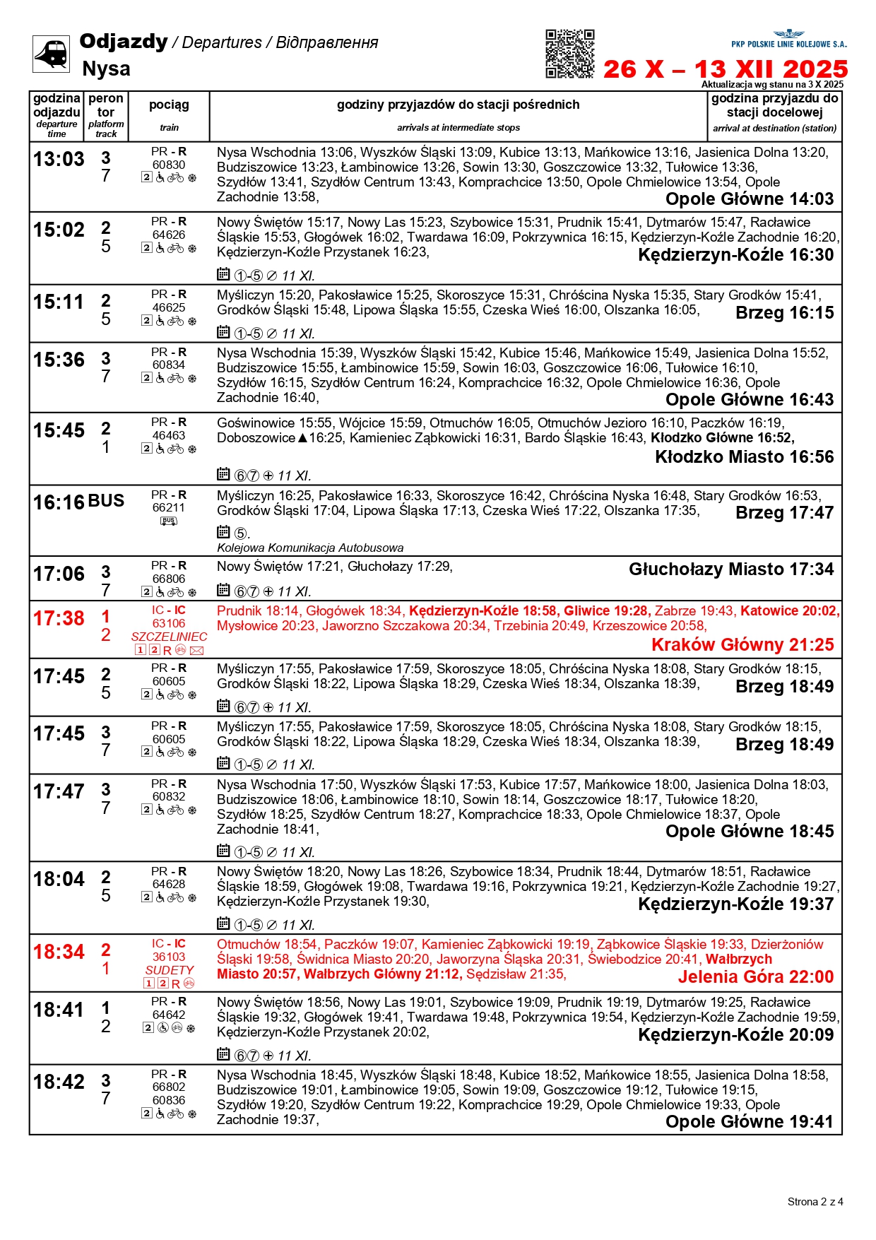 Pasażerów kolei czeka korekta rozkładu jazdy. Nowy rozkład jazdy będzie obowiązywać od 26 X do 13 XII 2025 roku.