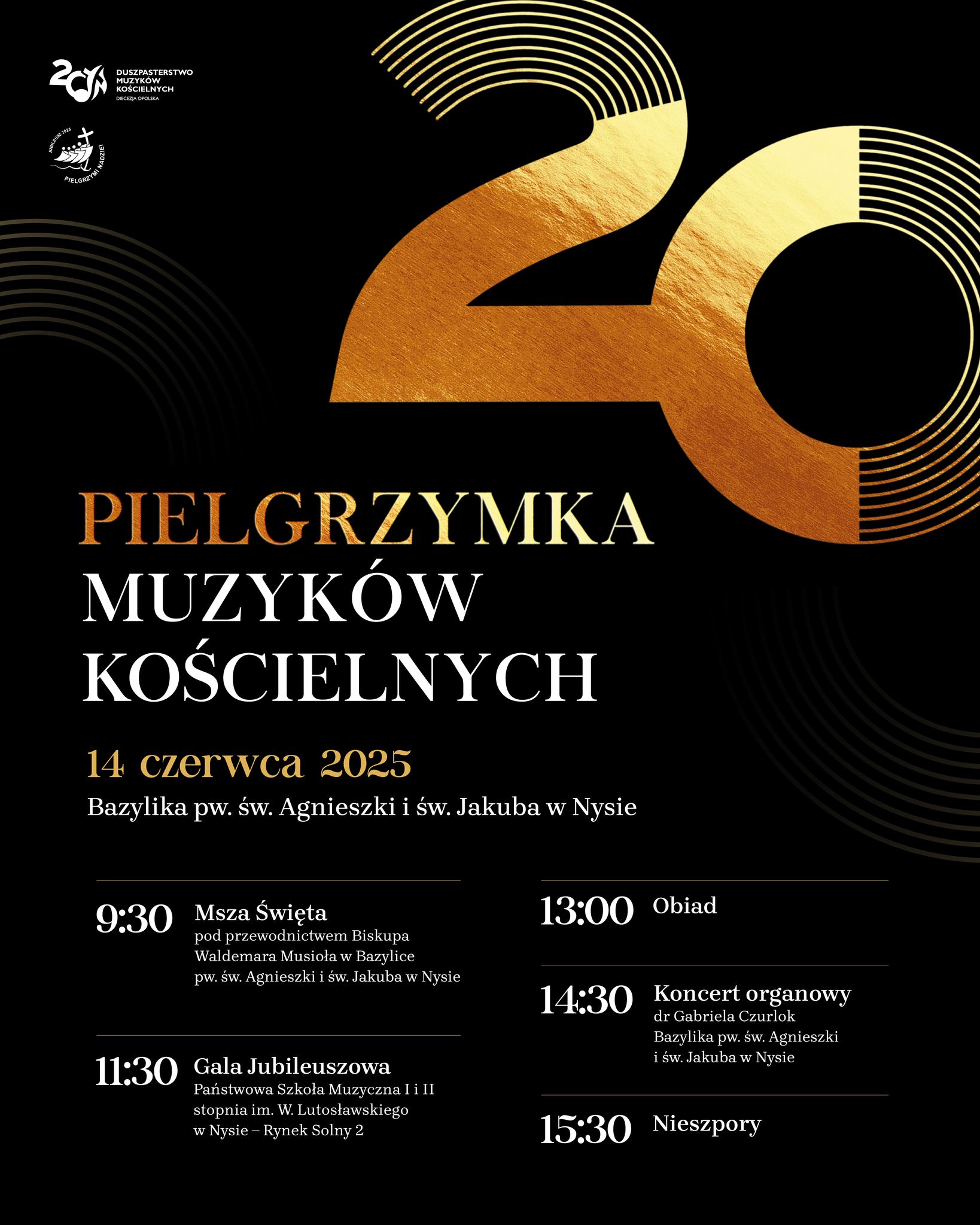 Centralne obchody jubileuszu 20-lecia Diecezjalnego Duszpasterstwo Muzyków Kościelnych odbędą się w sobotę, 14 czerwca, w Nysie, w formie pielgrzymki do bazyliki pw. św. Agnieszki i św. Jakuba.
