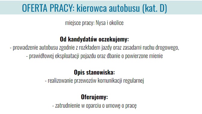 PKS Nysa szuka kierowcy autobusu kategorii D.