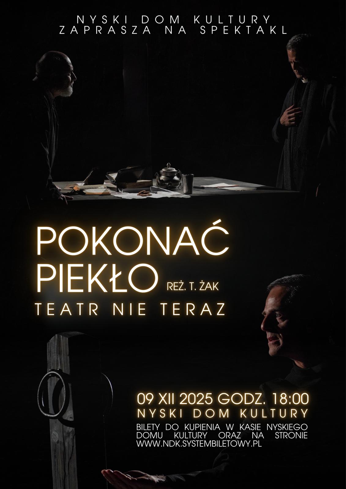 W najbliższy wtorek czyli 9 grudnia o godzinie 18:00 w Nyskim Domu Kultury zaplanowano spektakl pt. “Pokonać piekło” to poruszająca , niezwykle aktualna opowieść, która łączy losy dwóch polskich świętych bł. ks Jerzego Popiełuszki i św. o. Andrzeja Boboli.