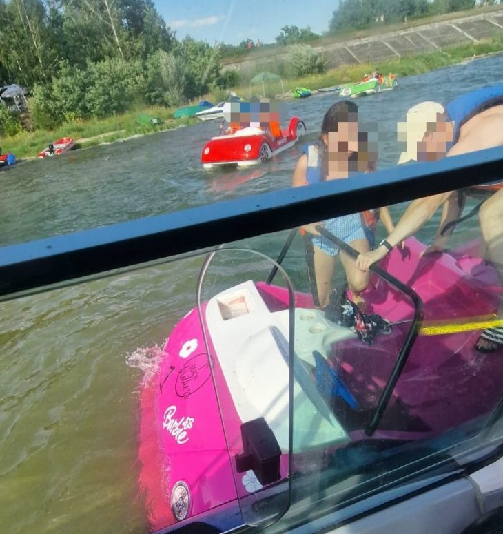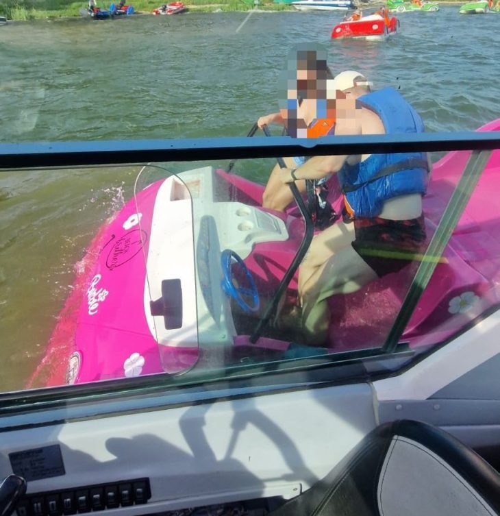 Podczas patrolu wodnego nad Jeziorem Nyskim policjanci Sezonowej Nieetatowej Służby na Wodach KPP w Nysie zauważyli osoby na rowerkach wodnych, które wzywają pomocy.
