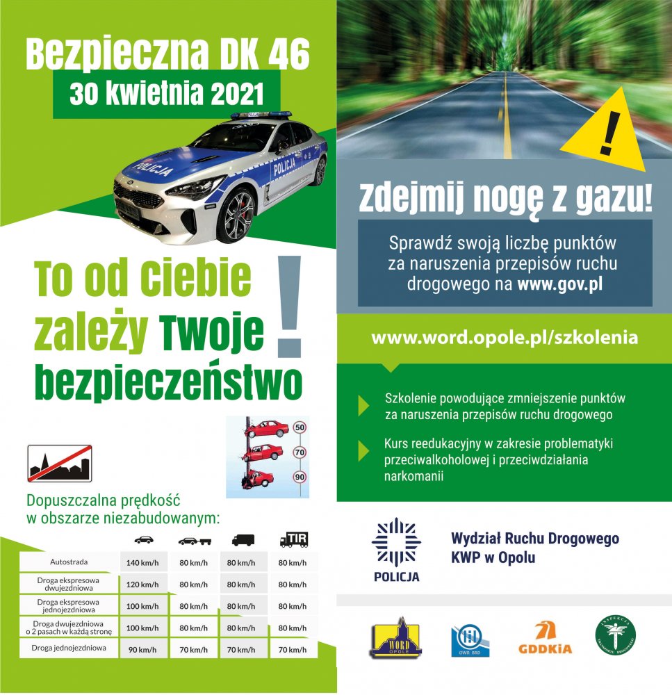 W najbliższy piątek, 30 kwietnia, policjanci z opolskiej drogówki wraz z funkcjonariuszami z województwa śląskiego i dolnośląskiego przeprowadzą równocześnie wzmożone działania kontrolno-prewencyjne pn. „Bezpieczna DK 46’’. W działaniach zaangażowane będą patrole wchodzące w skład grupy ,,SPEED’’ z terenu trzech województw. Policjanci w nieoznakowanych i oznakowanych radiowozach wyposażonych w wideorejestratory i laserowe mierniki prędkości będą reagować na wykroczenia i przestępstwa drogowe.