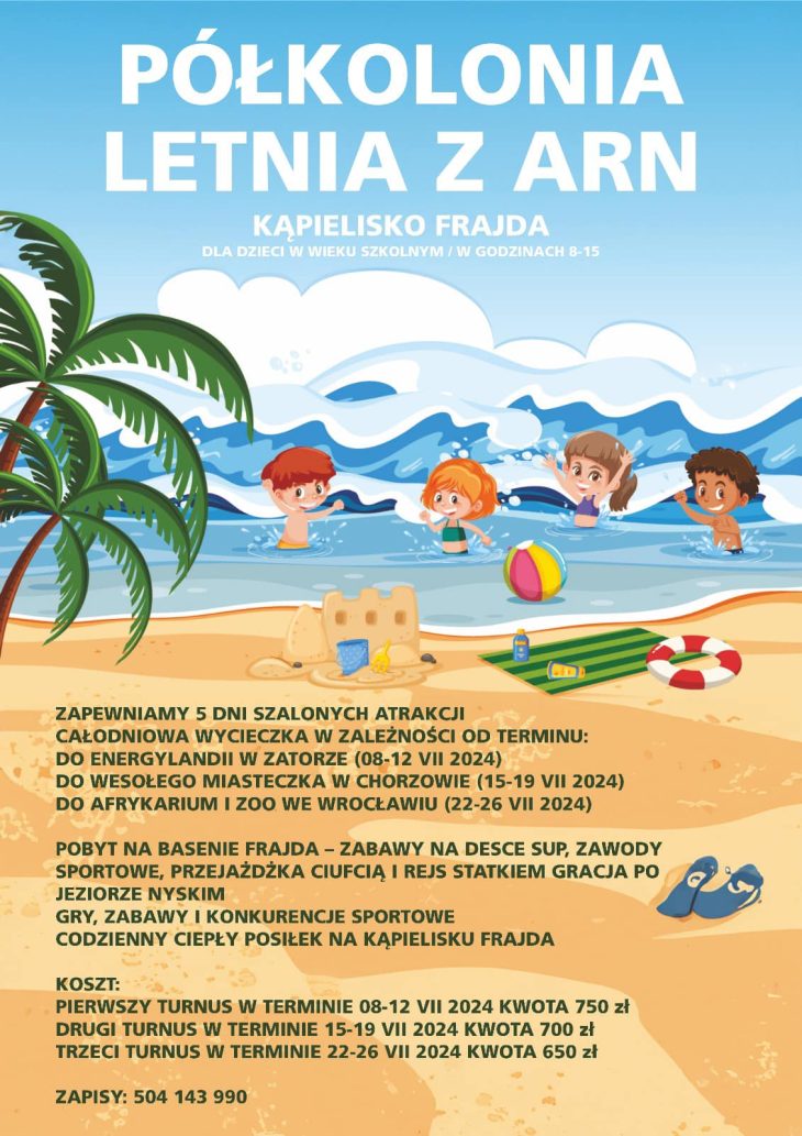 Co ważne – półkolonia letnia z ARN obejmuje nie tylko pobyt na “Frajdzie”. Dzieci i młodzież spędzą również czas nad Jeziorem Nyskim oraz wybiorą się na wycieczkę.
