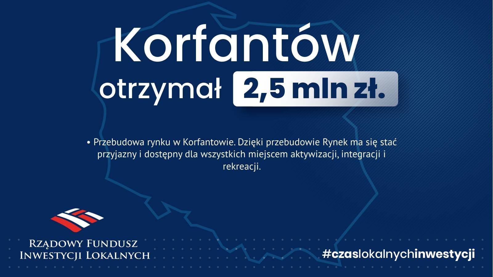 Gmina KORFANTÓW otrzyma 2 500 000 zł na przebudowę Rynku w Korfantowie.