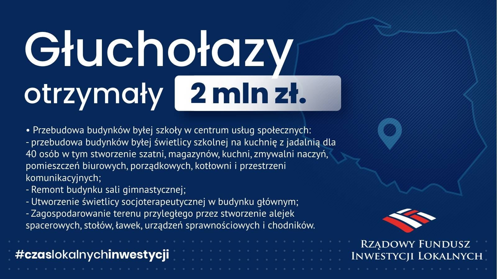 2 000 000zł, które otrzyma Gmina Głuchołazy zostaną przeznaczone na przebudowę budynków byłej szkoły w obiekt usług społecznych, inwestycja obejmie m.in.: