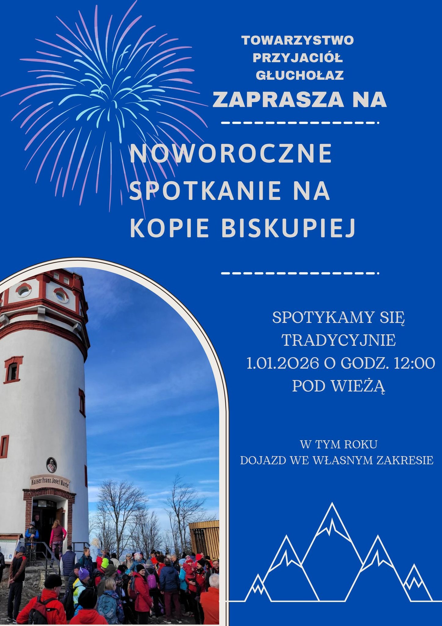 O północy rozświetlają się niebo i twarze ludzi — jedni przynoszą symboliczne lampki, inni termosy z gorącą herbatą, a jeszcze inni po prostu cieszą się chwilą. Z wieży widokowej roztacza się panorama, która w sylwestrową noc nabiera szczególnego uroku: migoczą światła Nysy, Głuchołaz, Zlatych Hor i okolicznych wiosek, a w oddali widać błyski fajerwerków z całego pogranicza.