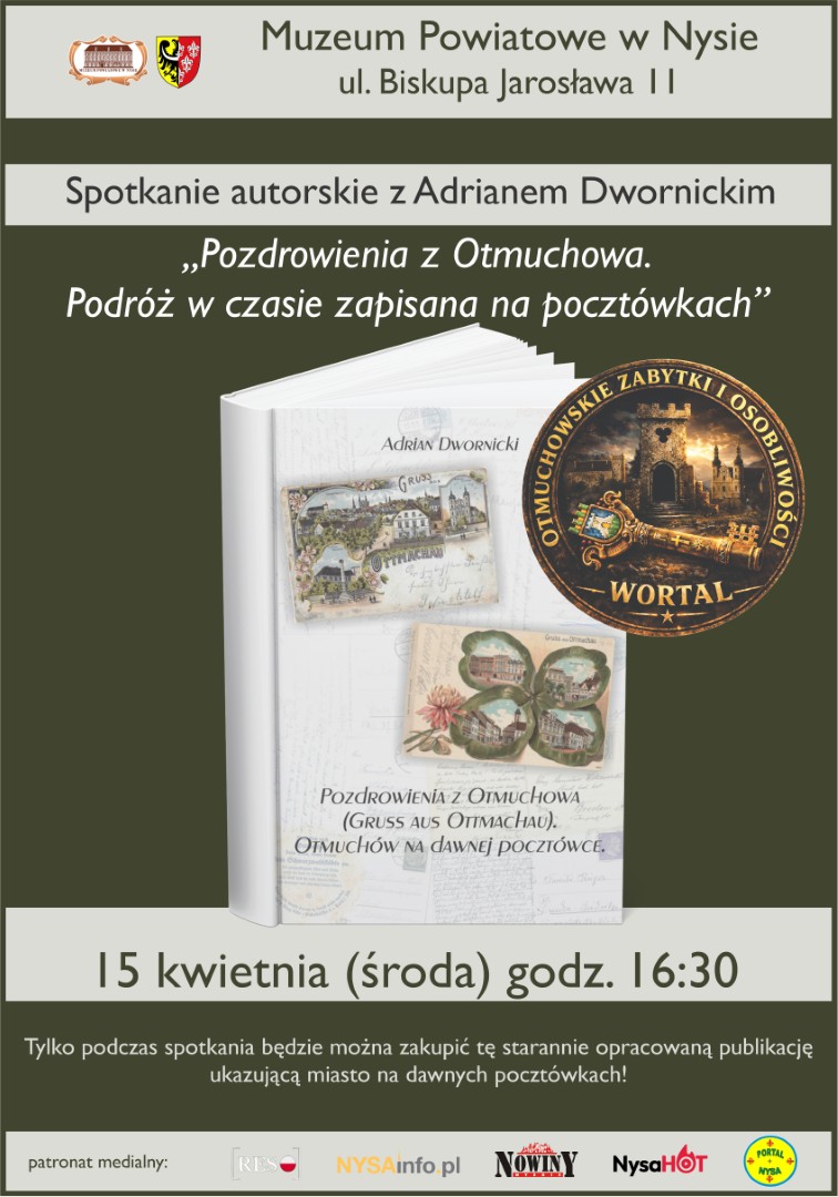 Muzeum Powiatowe zaprasza na spotkanie z Adrianem Dwornickim autorem publikacji Pozdrowienia z Otmuchowa. Otmuchów na dawnej pocztówce .