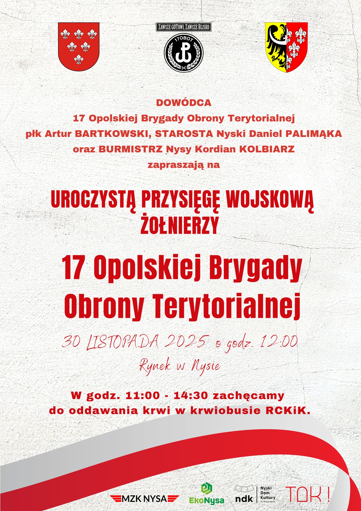 Dosłownie kilka dni temu przy ulicy Piastowskiej miało miejsce uroczyste przekazanie broni żołnierzom WOT, a już niebawem będziemy świadkami ślubowania żołnierzy w nyskim Rynku.