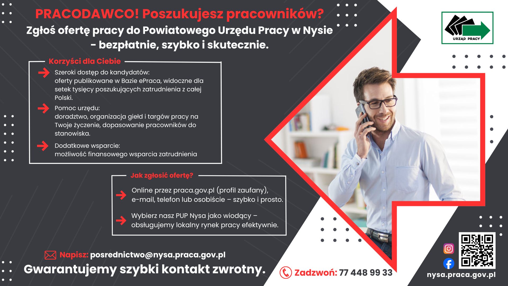 - Pomoc urzędu: doradztwo, organizacja giełd i targów pracy na Twoje życzenie, dopasowanie pracowników do stanowiska.