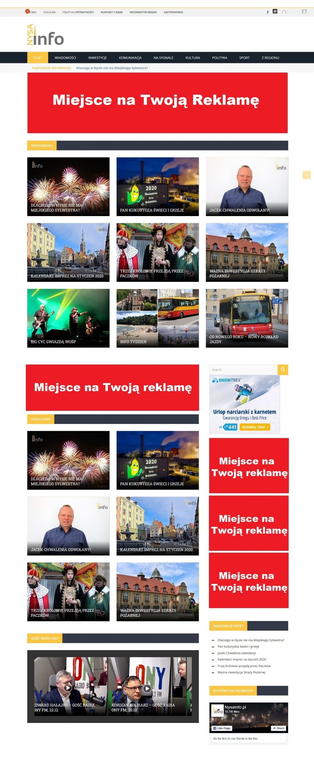 Dlaczego warto się reklamować na portalu NysaInfo.pl ? Każdego dnia aktualizujemy stronę, zapewniając najszybciej wiadomości dla mieszkańców Powiatu Nyskiego. Nasz główny profil na Facebooku śledzi ponad 42 tysiące osób!