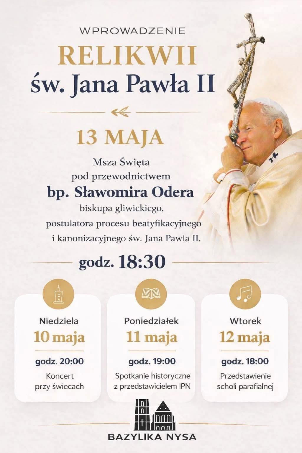 Już 13 maja w naszej parafii wyjątkowe wydarzenie – uroczyste wprowadzenie relikwii św. Jana Pawła II.