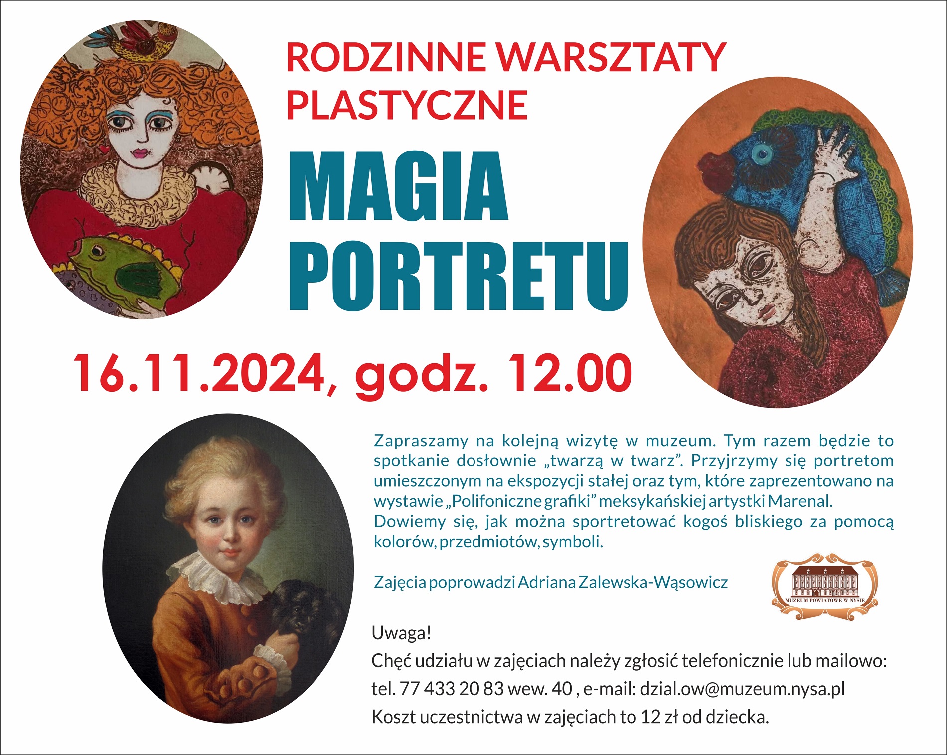 Muzeum Powiatowe w Nysie zaprasza na kolejne warsztaty rodzinne. Tym razem będzie to spotkanie dosłownie „twarzą w twarz”. Przyjrzymy się portretom umieszczonym na ekspozycji stałej oraz tym, które zaprezentowano na wystawie „Polifoniczne grafiki” meksykańskiej artystki Marenal.