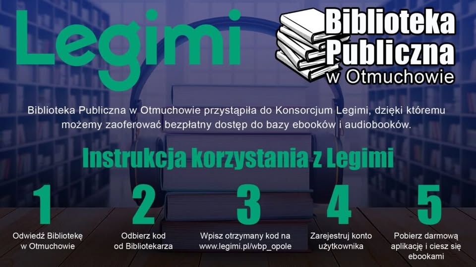 Biblioteka w Otmuchowie z radością informuję, że w tym roku placówka oferuje dostęp do kodów do aplikacji Legimi! Dzięki nim można czytać setki e-booków i audiobooków w wygodny sposób.