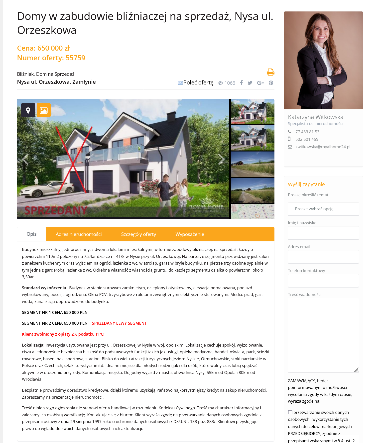 Royal Home Nieruchomości – Domy w zabudowie bliźniaczej na sprzedaż, Nysa ul. Orzeszkowa