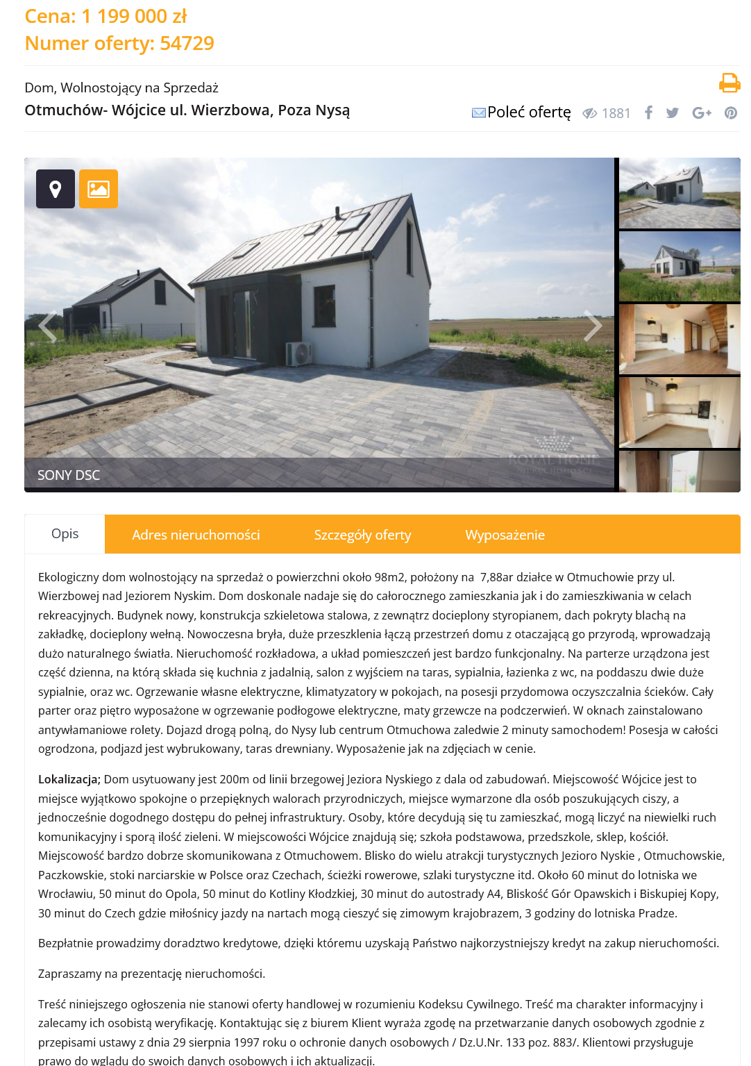 Na stronie Royal Home Nieruchomości dostępne jest ogłoszenie sprzedaży w domu w Otmuchowie-Wójcicach, który jest zlokalizowany nad Jeziorem Nyskim.