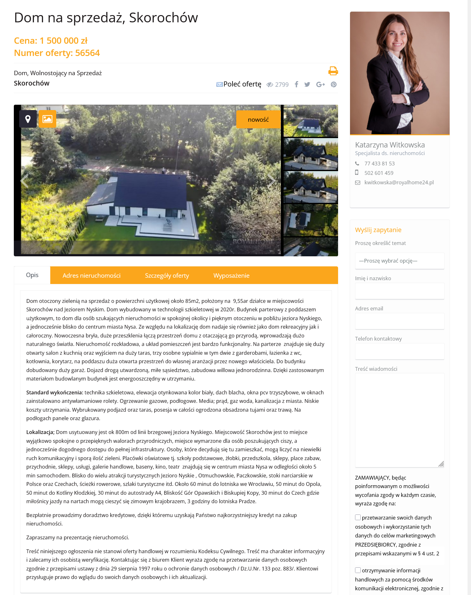 Na stronie Royal Home Nieruchomości dostępne jest ogłoszenie sprzedaży domu w Skorochowie.
