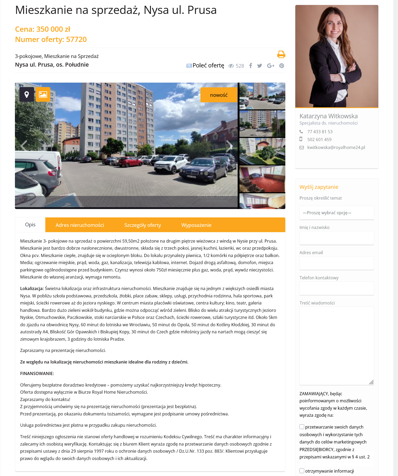 Na stronie Royal Home Nieruchomości pojawiło się nowe ogłoszenie dotyczące sprzedaży 3-pokojowego mieszkania w Nysie.