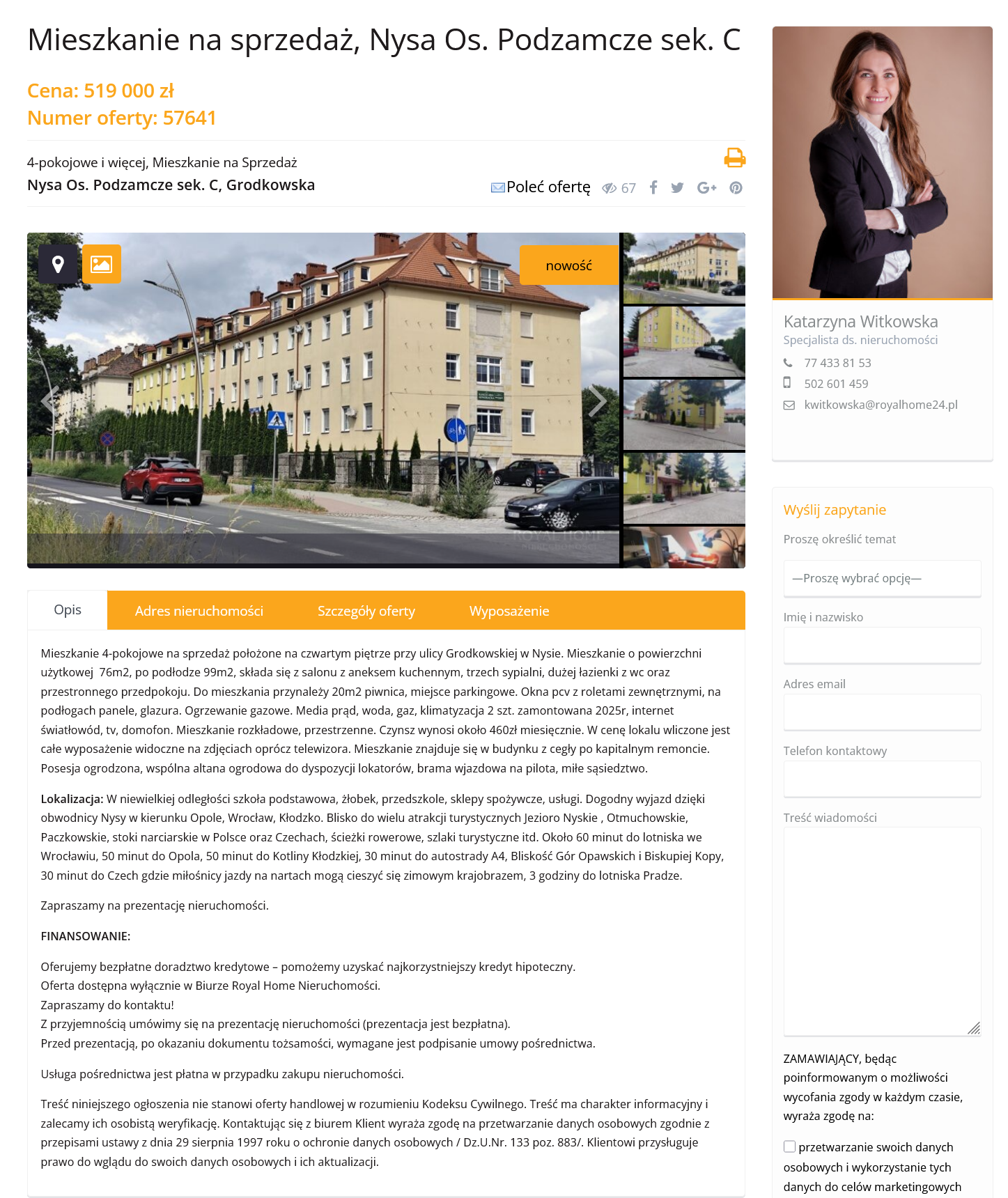Na stronie Royal Home Nieruchomości pojawiło się nowe ogłoszenie dotyczące sprzedaży mieszkania 4-pokojowego w Nysie.