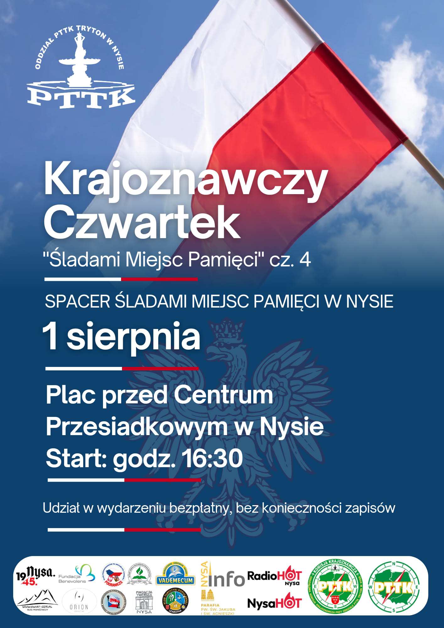 Spacer jest kontynuacją rozpoczętej w ubiegłym roku serii wycieczek poświęconych miejscom pamięci w naszym regionie. W związku z przypadającą 80 rocznicom wybuchu Powstania w Warszawskiego o godzinie 17:00 zapalimy znicze i oddamy hołd Powstańcom Warszawskim pod Pomnikiem Armii Krajowej w Nysie – informują organizatorzy.