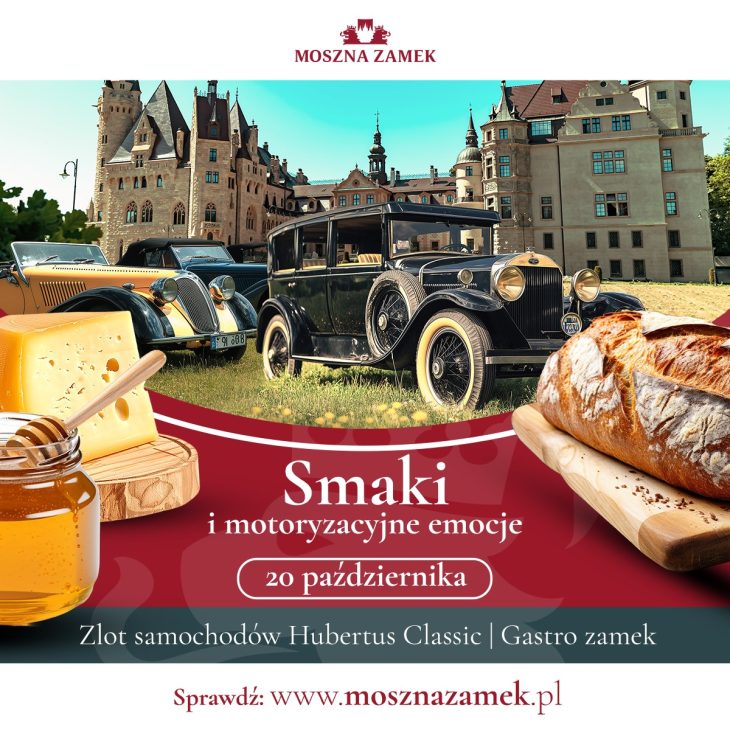 Moc atrakcji dla fanów motoryzacji oraz dobrego jedzenia. Już najbliższą niedzielę 20 października Zamek w Mosznej zaprasza na IV Rajd Samochodowy Hubertus Classic, oraz III Festiwal kulinarnych produktów tradycyjnych i lokalnych – Gastro Zamek 2024.