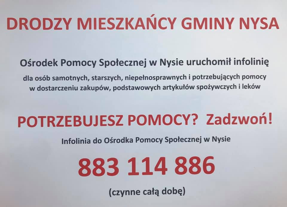 Wspólnie chrońmy przed zarażeniem naszych seniorów, bliskich i osoby osłabione innymi schorzeniami – zaznacza burmistrz Kordian Kolbiarz. I miedzy innymi dlatego został uruchomiony nr telefonu 883114886 – czynny cała dobę. Pod tym nr osoby samotne, starsze, niepełnosprawne oraz potrzebujące pomocy mogą się kontaktować w celu dostarczenia artykułów spożywanych czy leków.