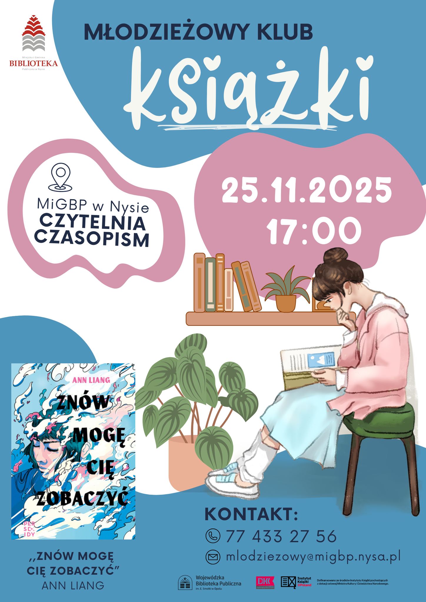 Miejska i Gminna Biblioteka Publiczna w Nysie zaprasza  na kolejne spotkanie Dyskusyjnego Klubu Książki dla Młodzieży, które odbędzie się we wtorek 25 listopada o godzinie 17. w Mediatece.