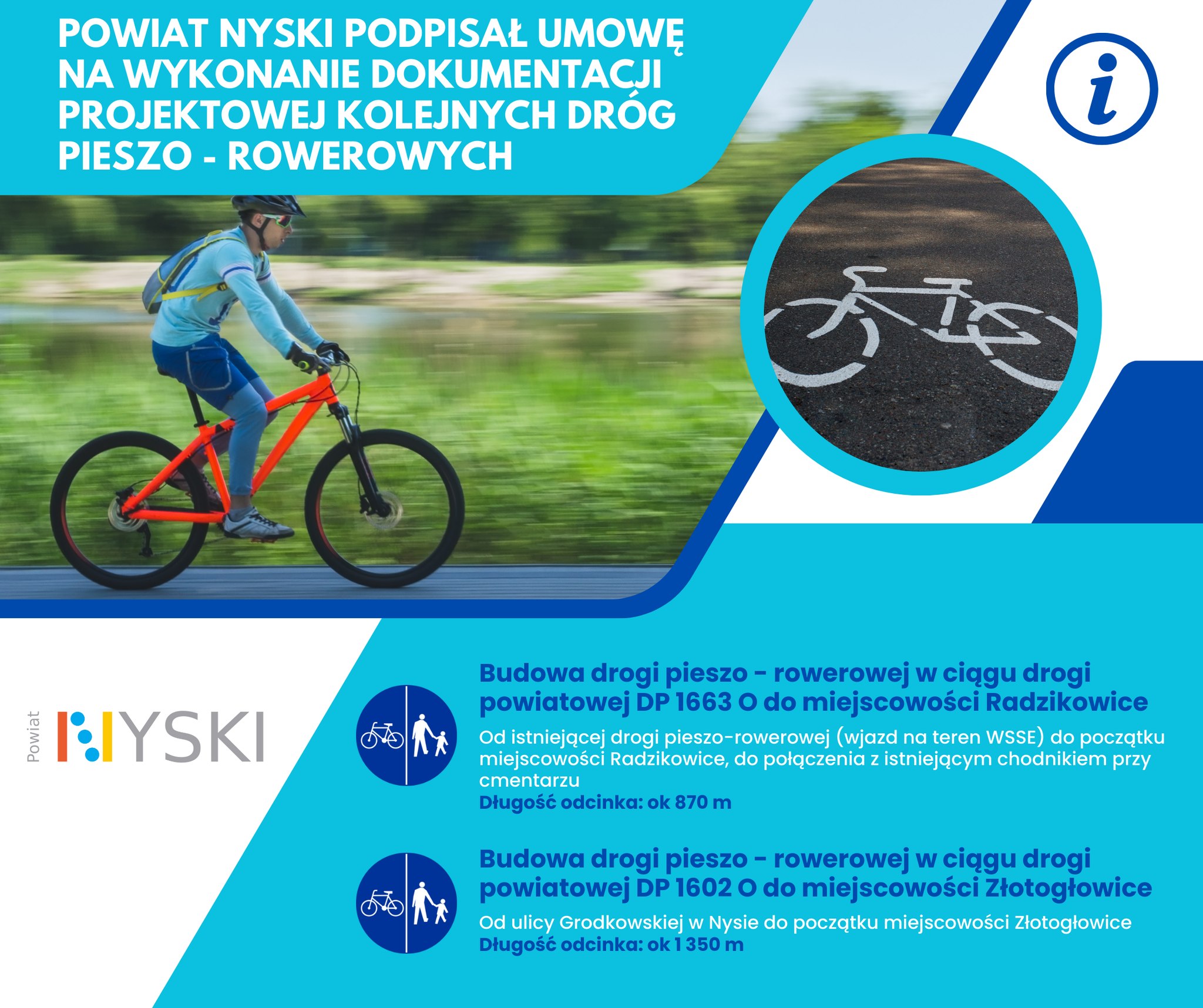 Powiat Nyski podpisał umowę na wykonanie dokumentacji projektowej kolejnych dróg pieszo – rowerowych.