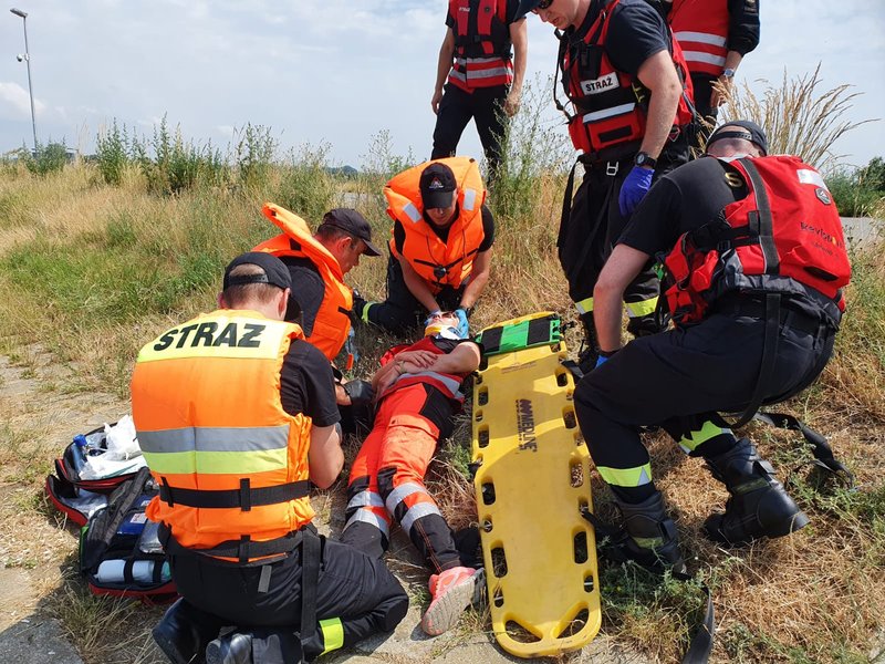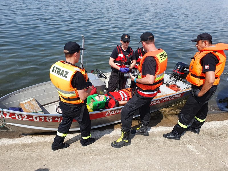 – wydobyciu poszkodowanego na powierzchnię, przetransportowaniu na brzeg oraz udzieleniu KPP.