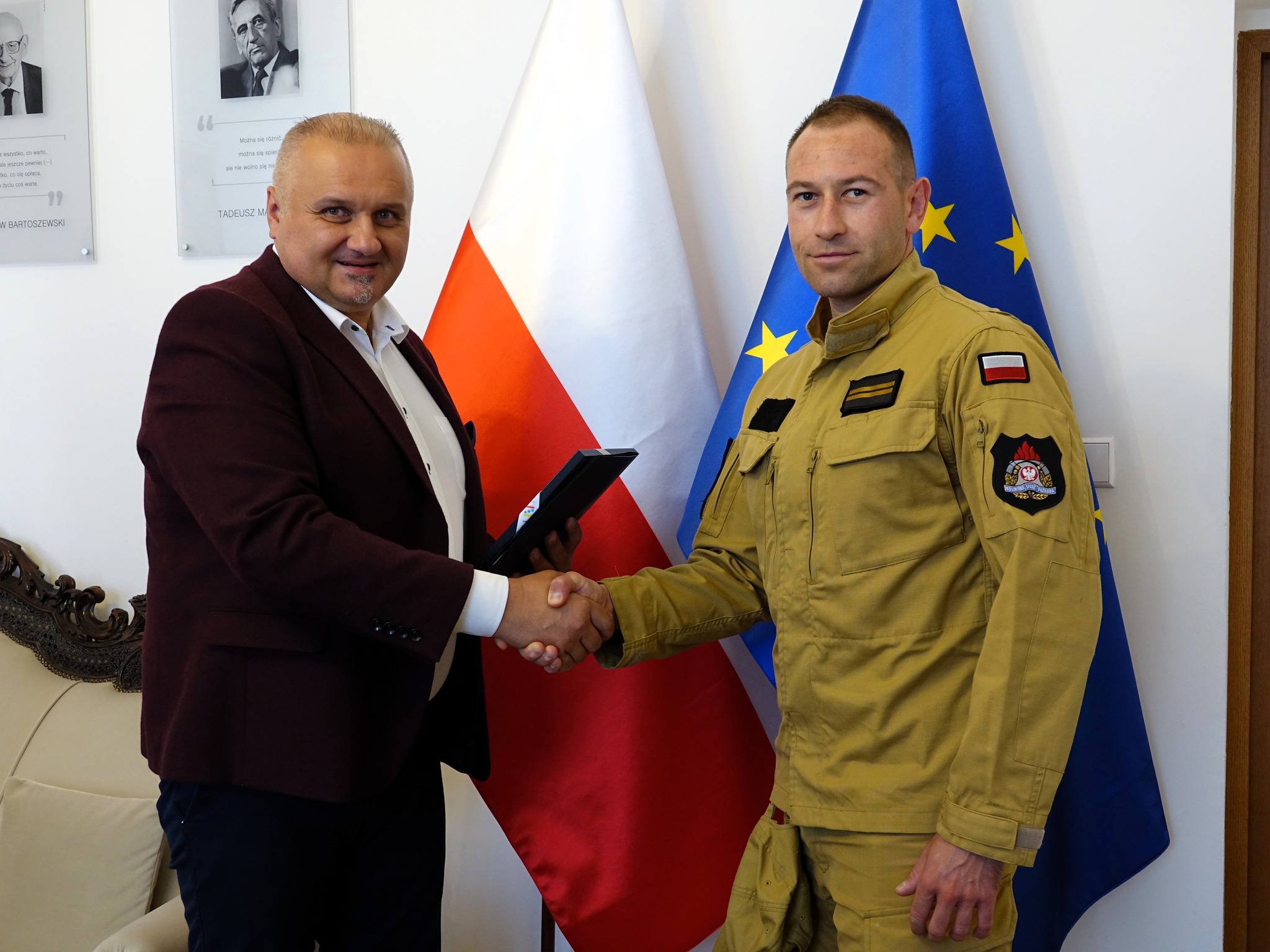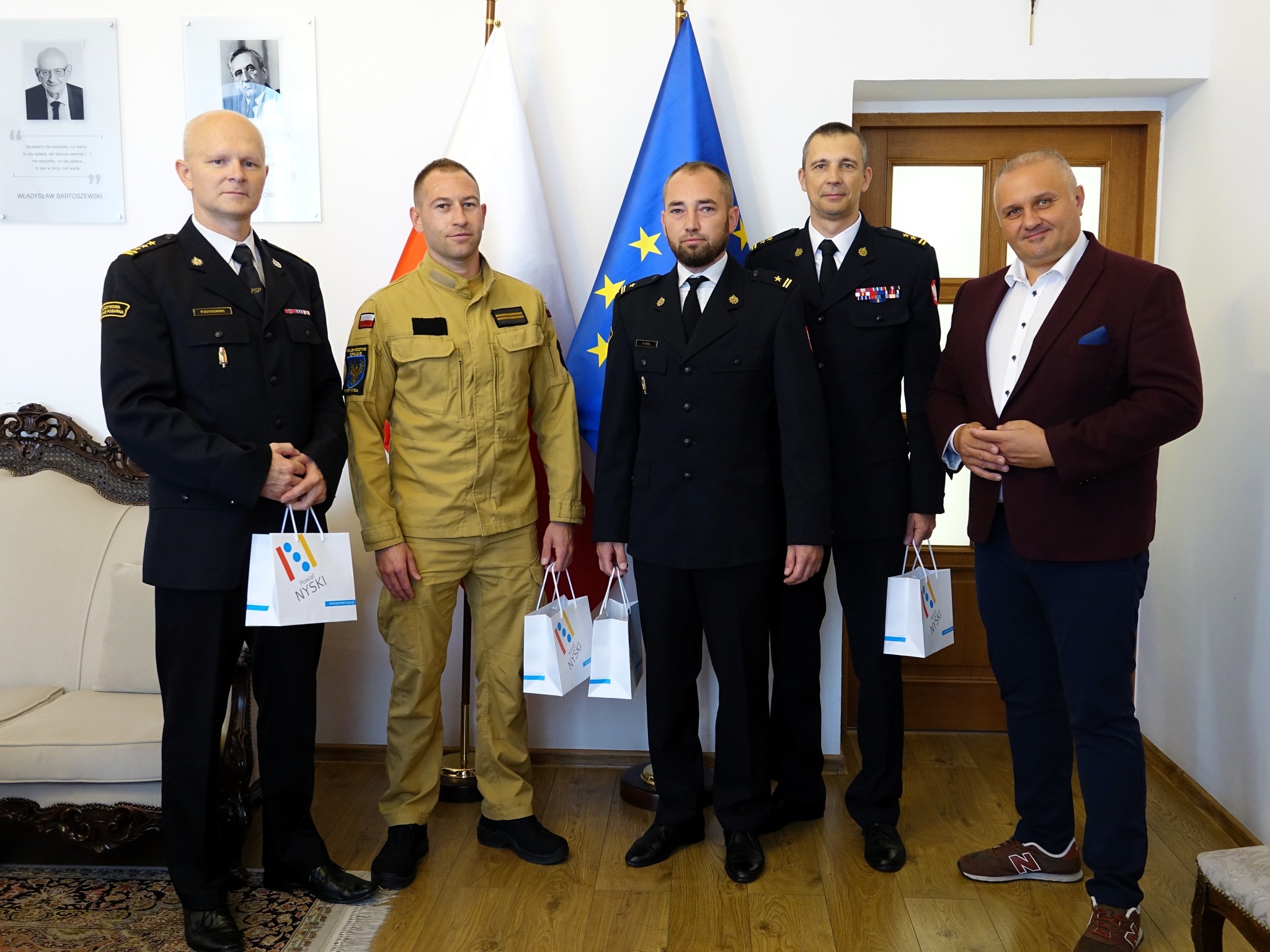 Dziś, 5 września, Daniel Palimąka Starosta Nyski, bryg. mgr inż. Dariusz Kulawinek Komendant Powiatowy Państwowej Straży Pożarnej w Brzegu oraz st. bryg. mgr inż. Paweł Gotkowski Komendant Powiatowy Państwowej Straży Pożarnej w Nysie wyrazili wdzięczność bohaterom akcji. W swoich słowach podkreślili, że takie czyny są wyrazem najwyższego etosu służby i stanowią wzór dla całej społeczności – informuje Starostwo Powiatowe w Nysie.