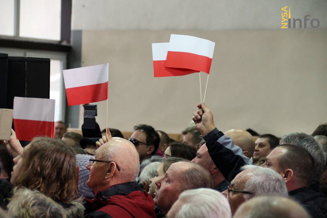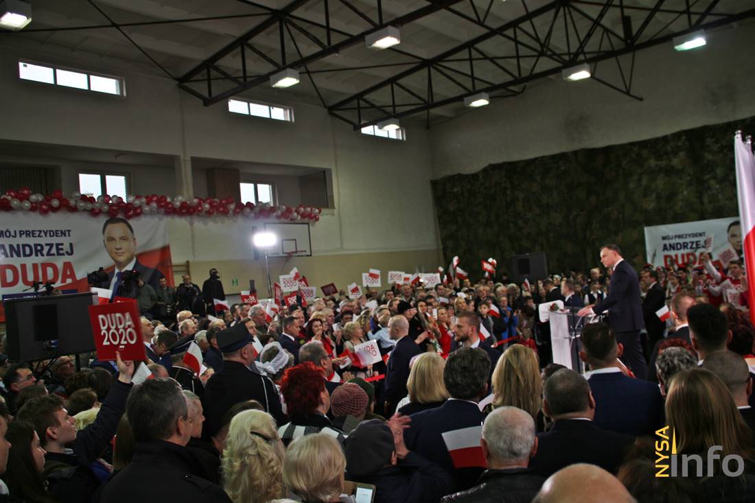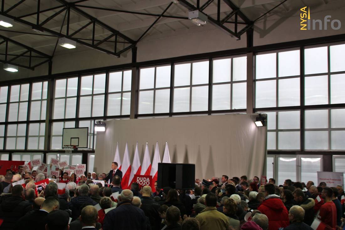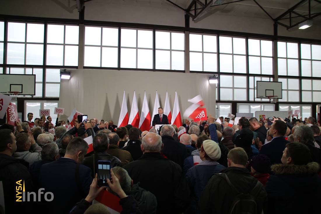 Chętnych na spotkanie było więcej niż miejsc w szkole. Dlatego też transmitowano dźwięk na zewnątrz. Na spotkaniu nie zabrakło także swoistego puszczenia oka w kierunku mieszkańców Nysy, bowiem Andrzej Duda zauważył, że Nysa otrzymała prawa miejskie przed jego rodzinnym Krakowem.